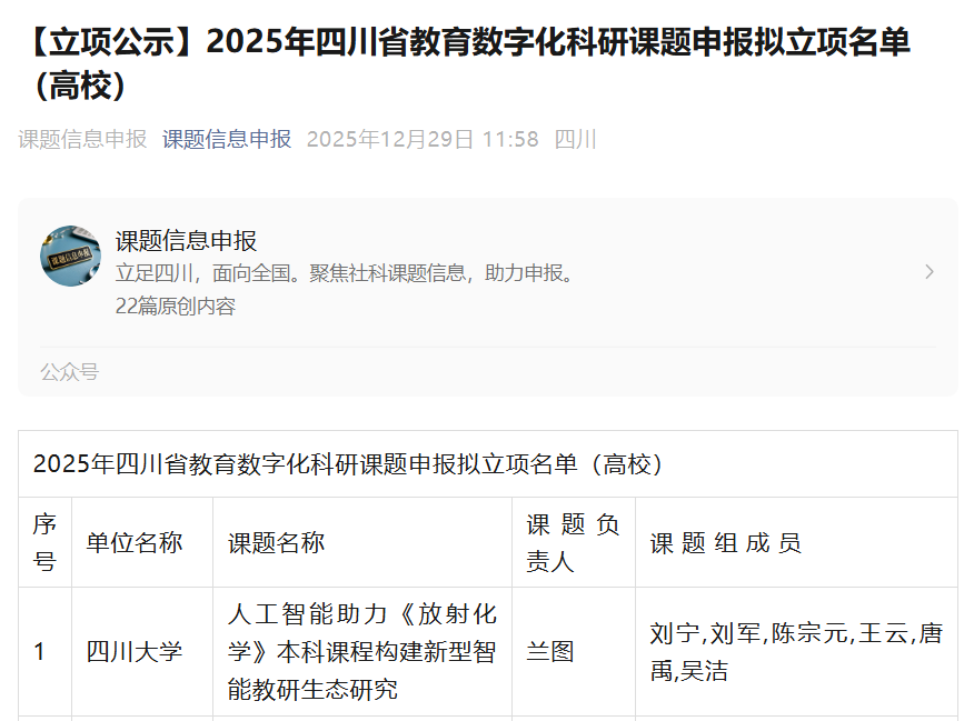 喜讯:我校喜获2025年四川省教育数字化科研课题立项