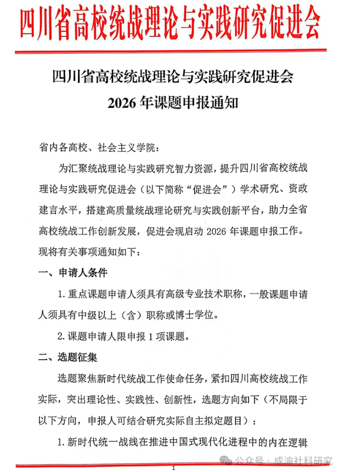 四川省高校统战理论与实践研究促进会2026年课题申报通知